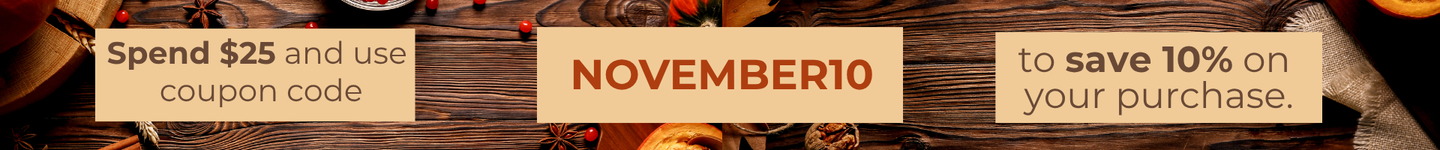 Spend $25 and use coupon code OCTOBER10 to save 10% on your purchase.